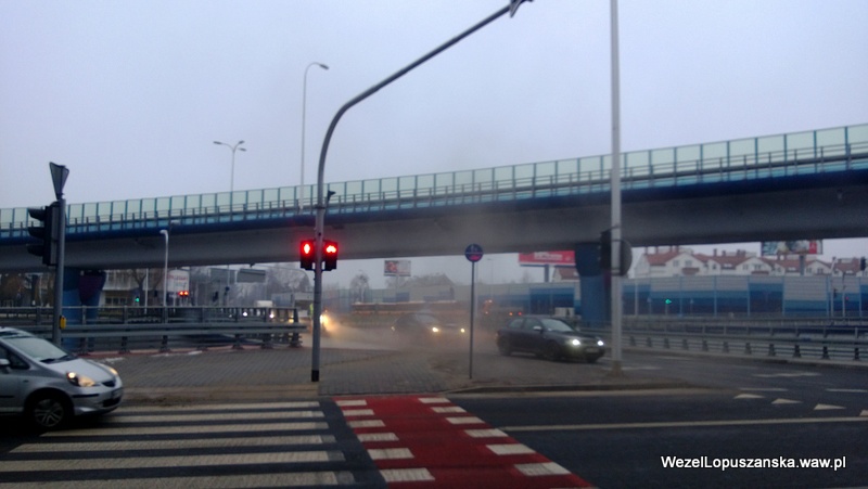 2013.02.28 1 – Węzeł Łopuszańska Warszawa – tumany kurzu przy rondzie